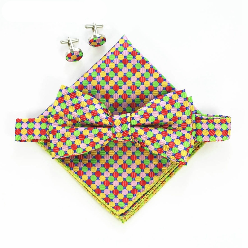 Barevný set - motýlek + kapesník + manžetové knoflíčky Bubble