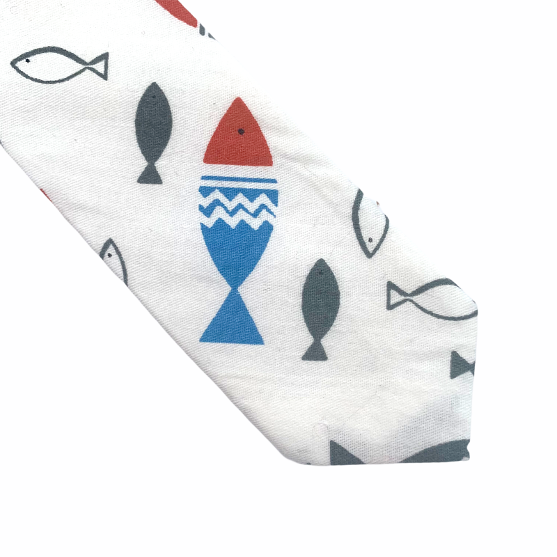 - Bílá chlapecká kravata Ryby