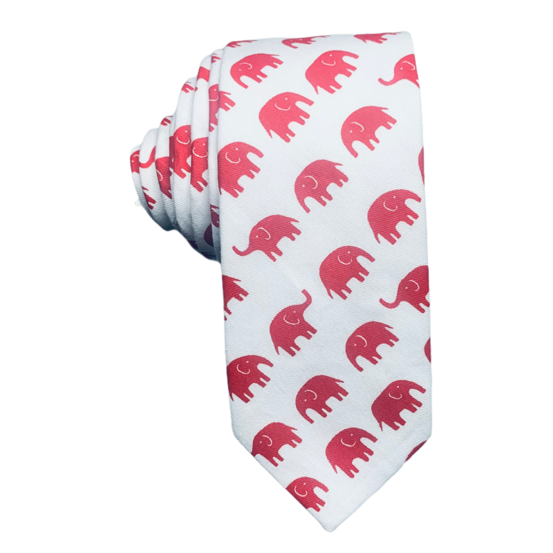 Popis: Nová bílo - červená pánská bavlněná kravata Slon.