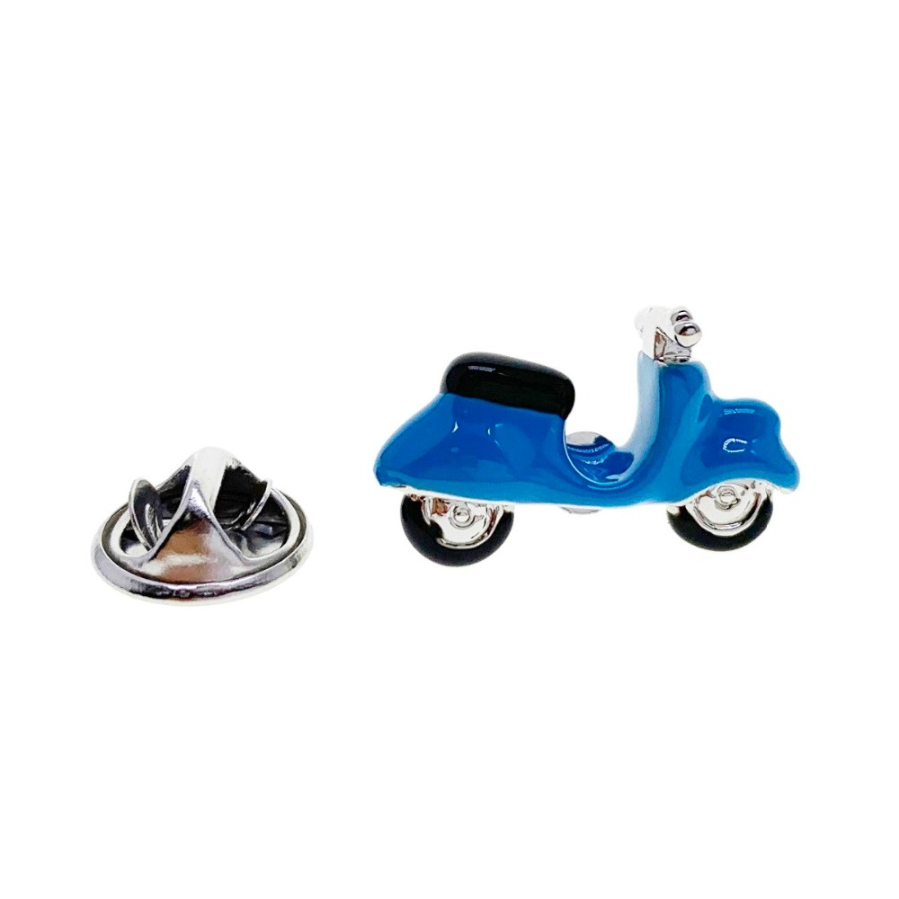 Popis: Nový pánský módní doplněk - brož modrý skútr do klopy saka nebo kabátu je oživením Vašeho outfitu.
