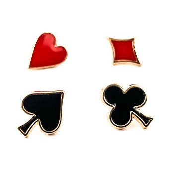 Pánská i dámská brož do klopy saka symboly z pokerových karet - 4 kusy