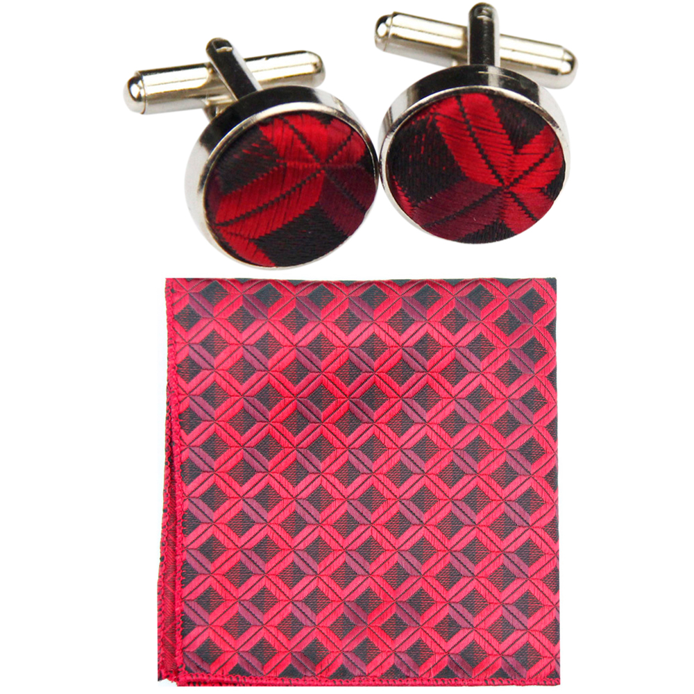 Černo - červený set - kapesník + manžetové knoflíčky Geometric
