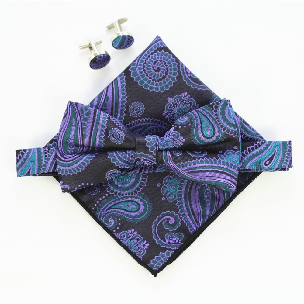 Černo - fialový set - motýlek + kapesník + manžetové knoflíčky VintageSkladem 1 ks449 Kč/ ks