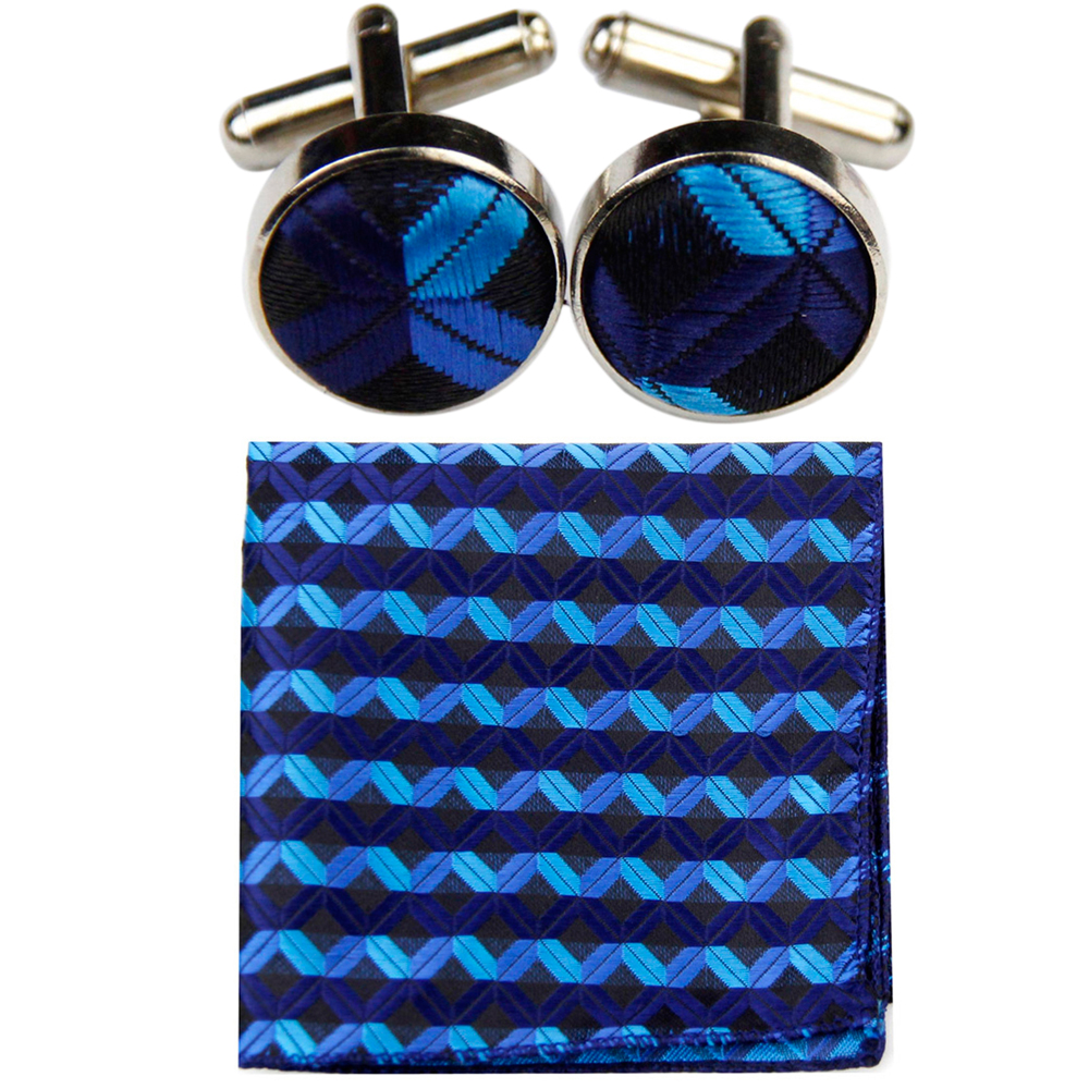 Černo - modrý set - kapesník + manžetové knoflíčky Geometric