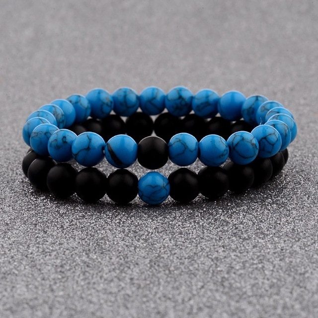 Černo - modrý set pánský a dámský náramek Couple