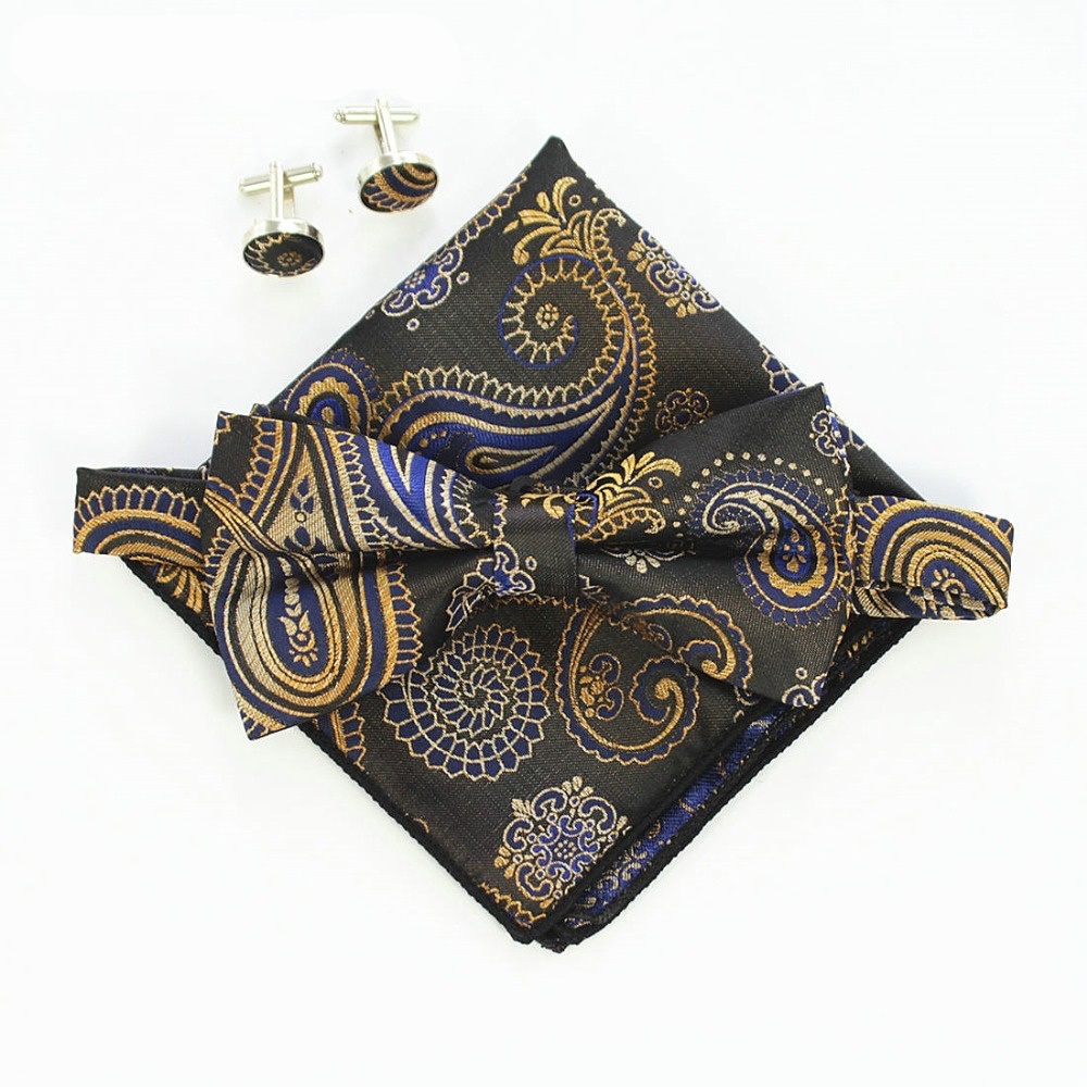 Pánský set složený z motýlku, kapesníku a manžetových knoflíčků