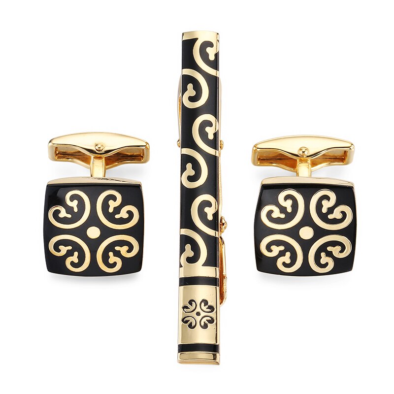 Černo - zlatý set - spona na kravatu a manžetové knoflíčky Ornament