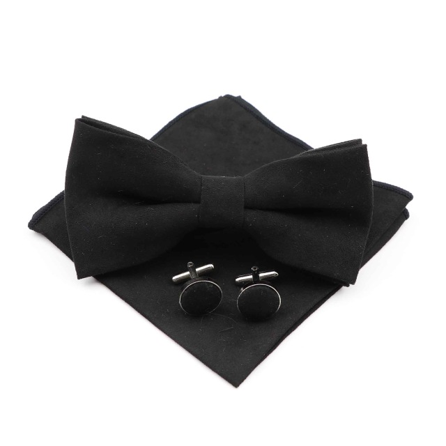 Černý set - motýlek + kapesník + manžetové knoflíčky Semiš