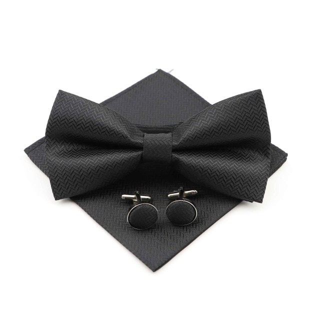 Pánský set složený z motýlku, kapesníku a manžetových knoflíčků