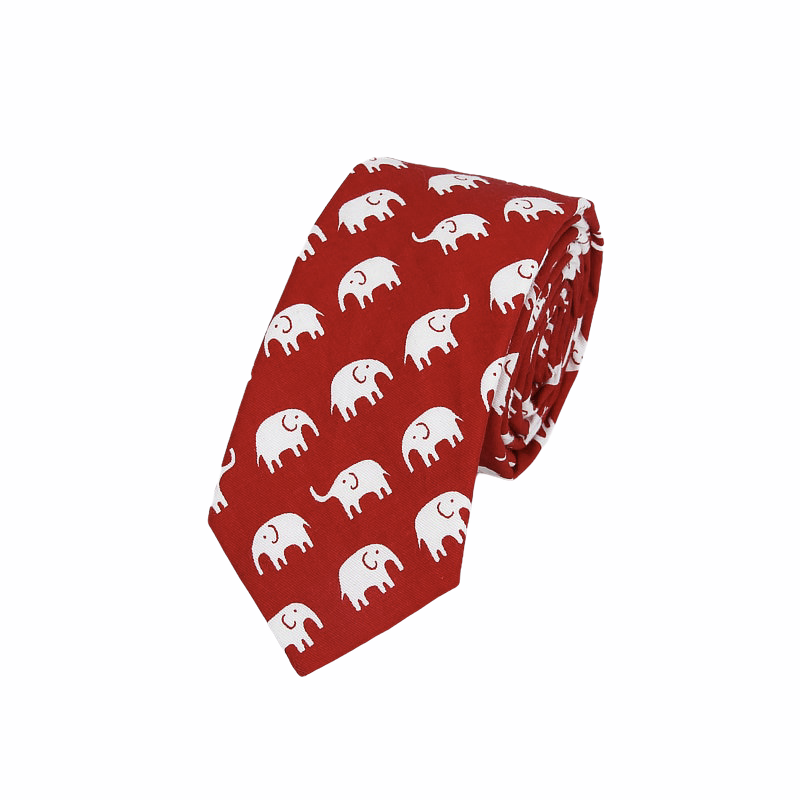 Popis: Nová červeno - bílá pánská bavlněná kravata Slon.