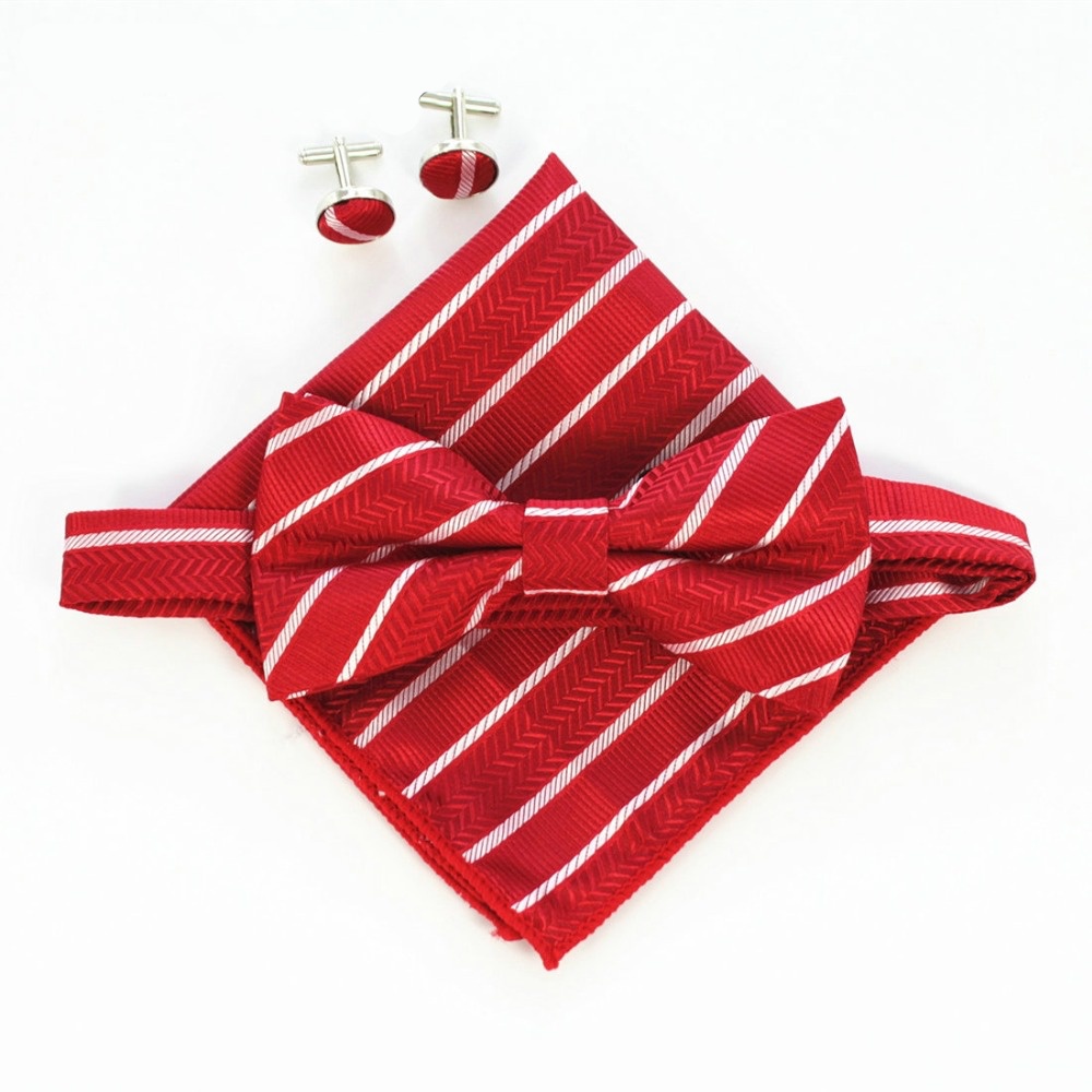Červeno - bílý set - motýlek + kapesník + manžetové knoflíčky PruhySkladem 1 ks449 Kč/ ks