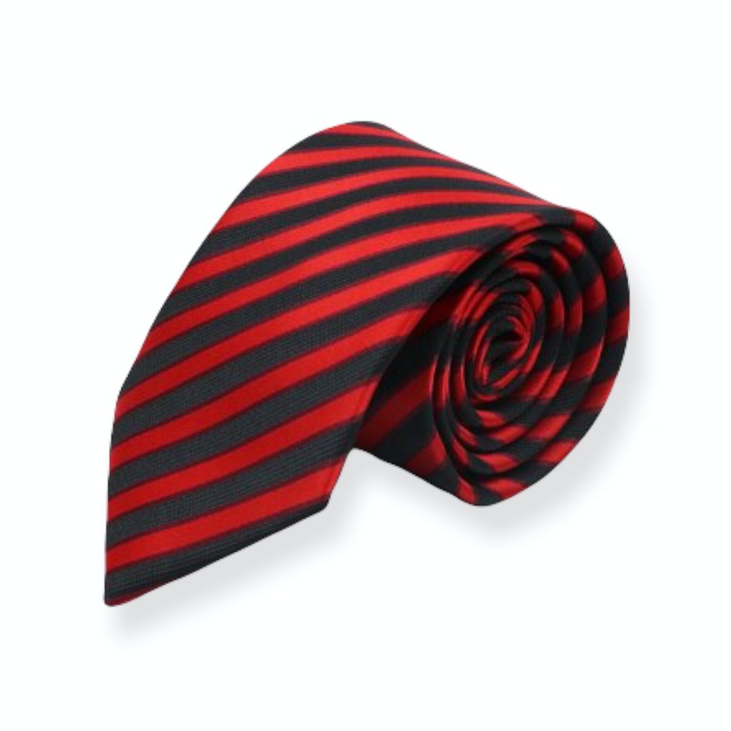 Popis: Nová stylová pánská kravata v červeno - černé barvě s pruhovým motivem.