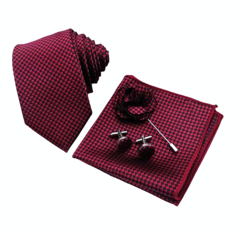 Červeno - černý set Houndstooth - kravata, kapesník a manžetové knoflíčky + brožSkladem 1 set799 Kč/ set