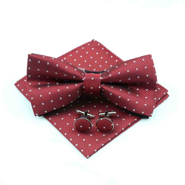 Pánský set složený z motýlku, kapesníku a manžetových knoflíčků