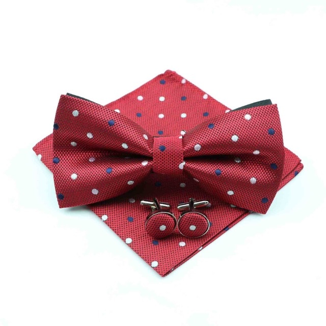 Červený set - motýlek + kapesník + manžetové knoflíčky Puntík