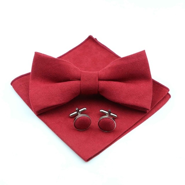 - Červený set - motýlek + kapesník + manžetové knoflíčky Semiš