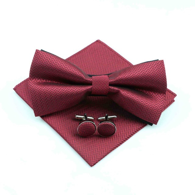 Pánský set složený z motýlku, kapesníku a manžetových knoflíčků