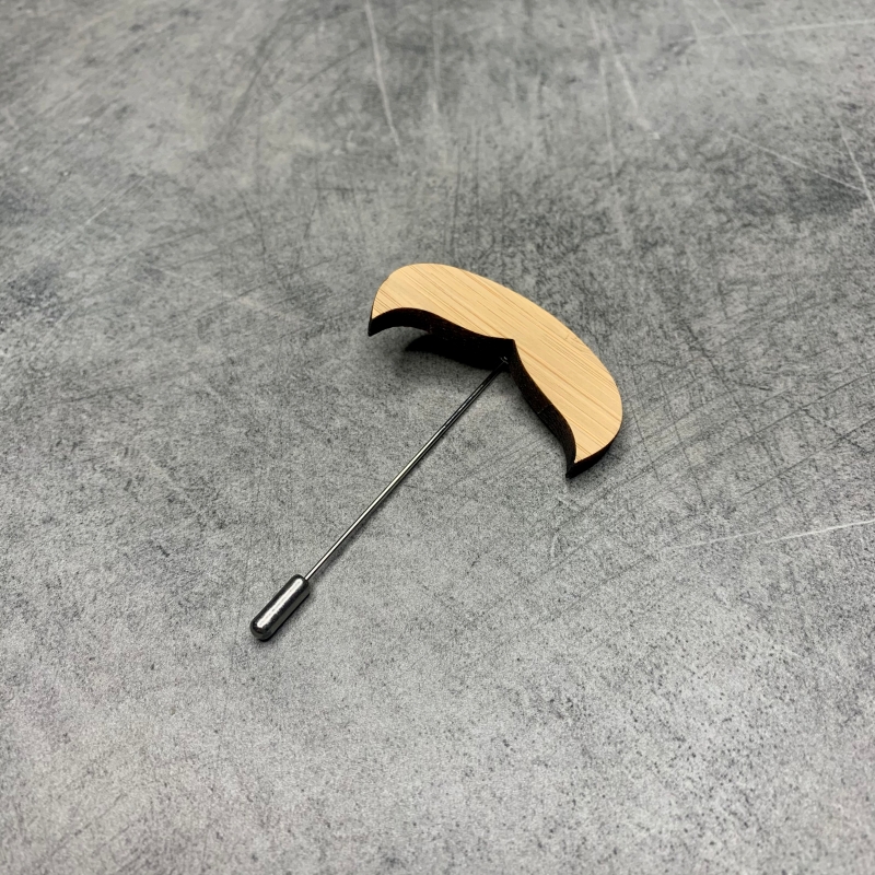 Dřevěná brož Knír bručoun