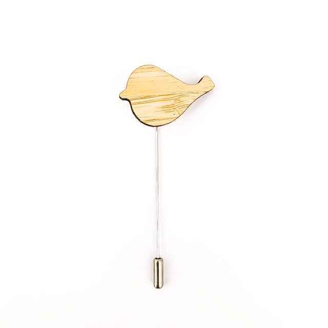 Originální dřevěná brož s motivem roztomilého ptáčka.