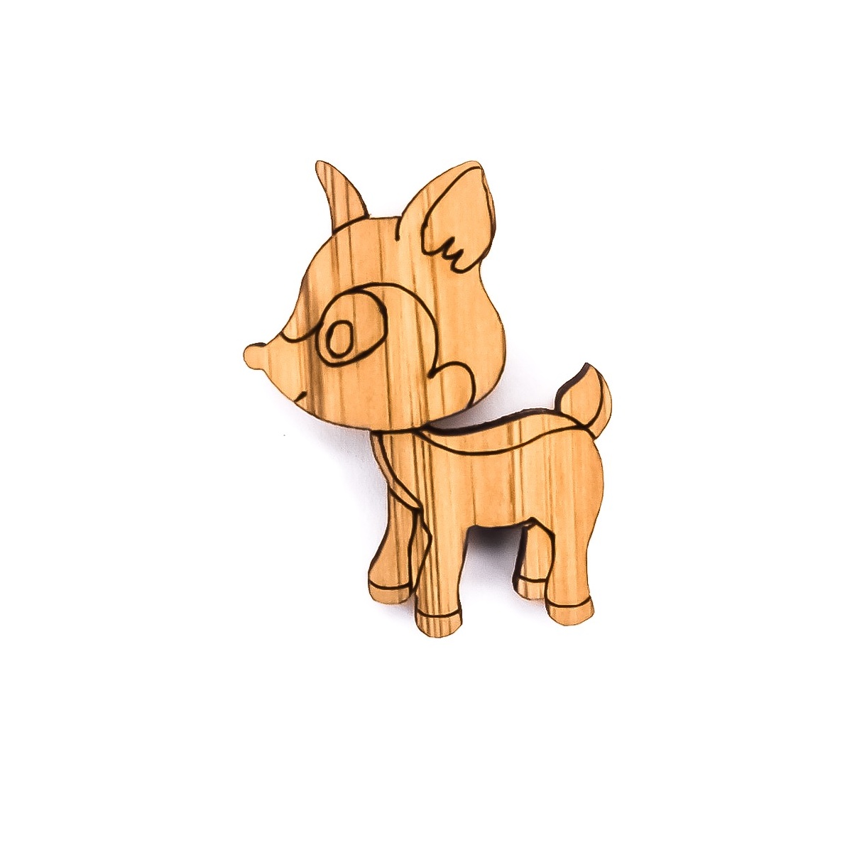 Originální dřevěná brož s motivem malého roztomilého srnečka.