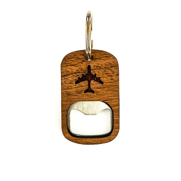 Dřevěná klíčenka Letadlo s otvírákem na pivo