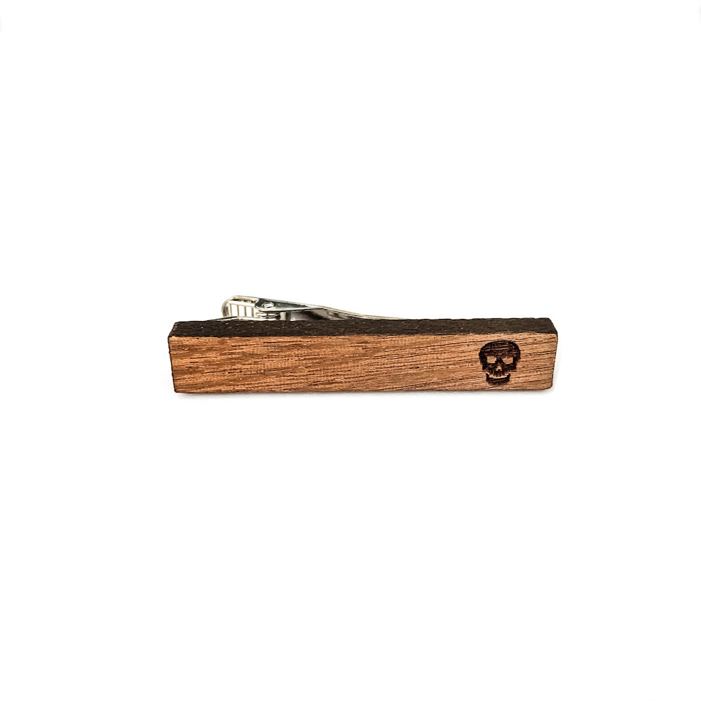 Popis: Nová pánská dřevěná spona na kravatu s vygravírovanou lebkou je oživením Vašeho outfitu.
