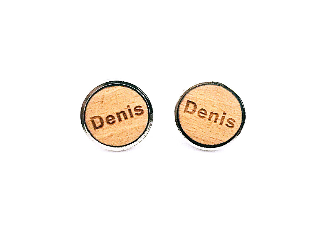Popis: Originální a velmi osobité dřevěné manžetové knoflíčky Jména jsou vyrobené ze dřeva a mužské jméno Denis je vygravírováno laserem do dřeva. Dřevěná destička je poté osazena do kovového lůžka manžetky.