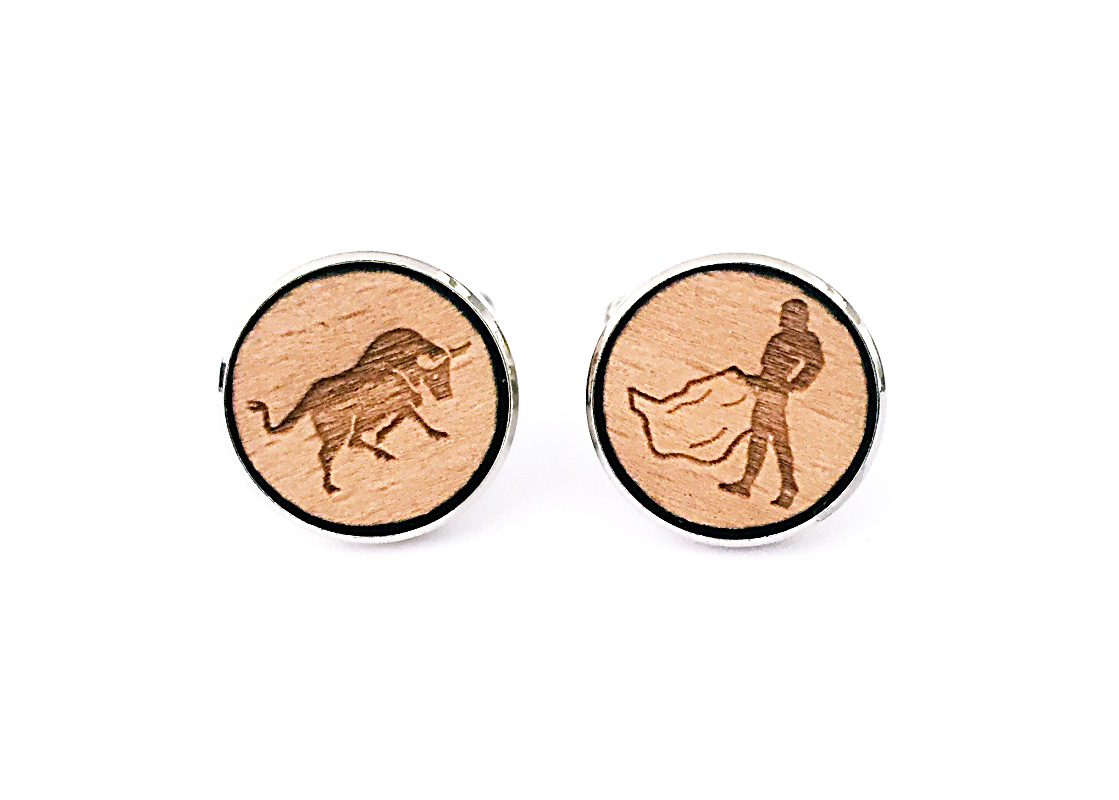 - Dřevěné manžetové knoflíčky Divoký býk a toreador