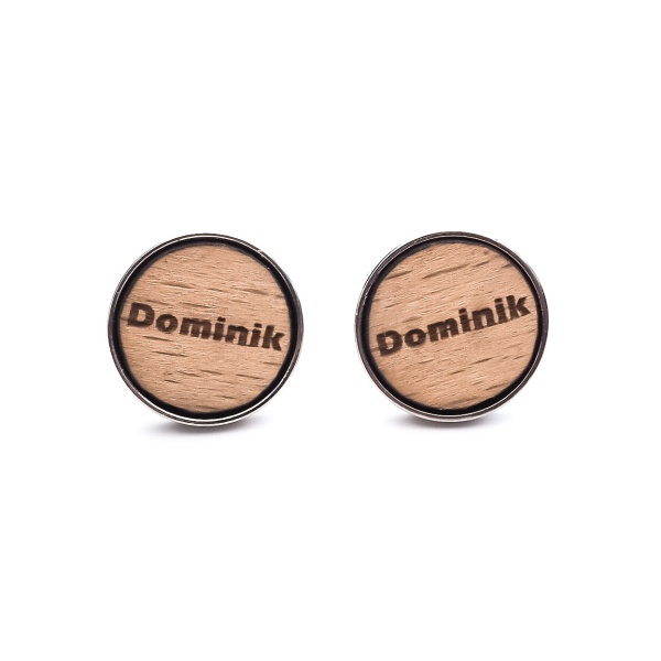 Popis: Originální a velmi osobité dřevěné manžetové knoflíčky Jména jsou vyrobené ze dřeva a mužské jméno Dominik je vygravírováno laserem do dřeva. Dřevěná destička je poté osazena do kovového lůžka manžetky.