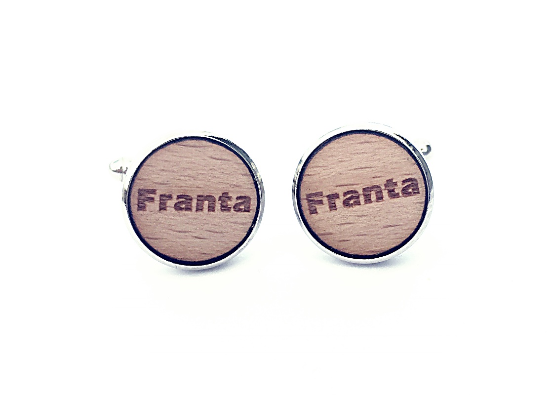 Popis: Originální a velmi osobité dřevěné manžetové knoflíčky Jména jsou vyrobené ze dřeva a mužské jméno Franta je vygravírováno laserem do dřeva. Dřevěná destička je poté osazena do kovového lůžka manžetky.