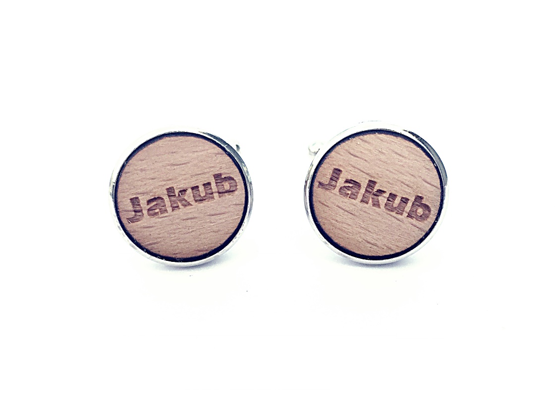 Popis: Originální a velmi osobité dřevěné manžetové knoflíčky Jména jsou vyrobené ze dřeva a mužské jméno Jakub je vygravírováno laserem do dřeva. Dřevěná destička je poté osazena do kovového lůžka manžetky.