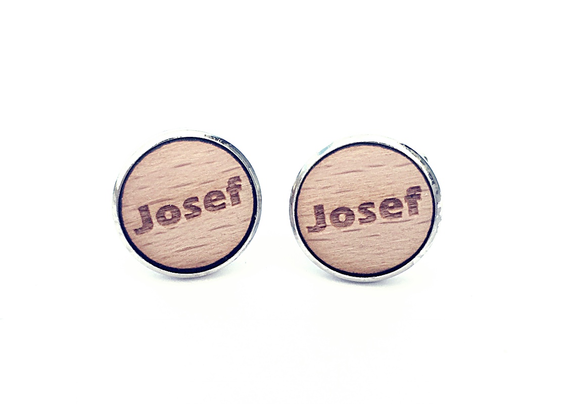 Popis: Originální a velmi osobité dřevěné manžetové knoflíčky Jména jsou vyrobené ze dřeva a mužské jméno Josef je vygravírováno laserem do dřeva. Dřevěná destička je poté osazena do kovového lůžka manžetky.