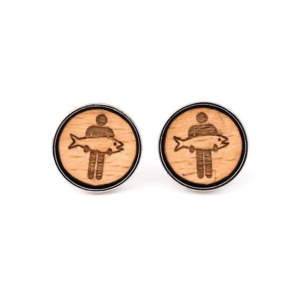 - Dřevěné manžetové knoflíčky Rybář s rybou