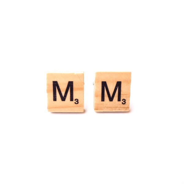 - Dřevěné manžetové knoflíčky Scrabble písmeno M