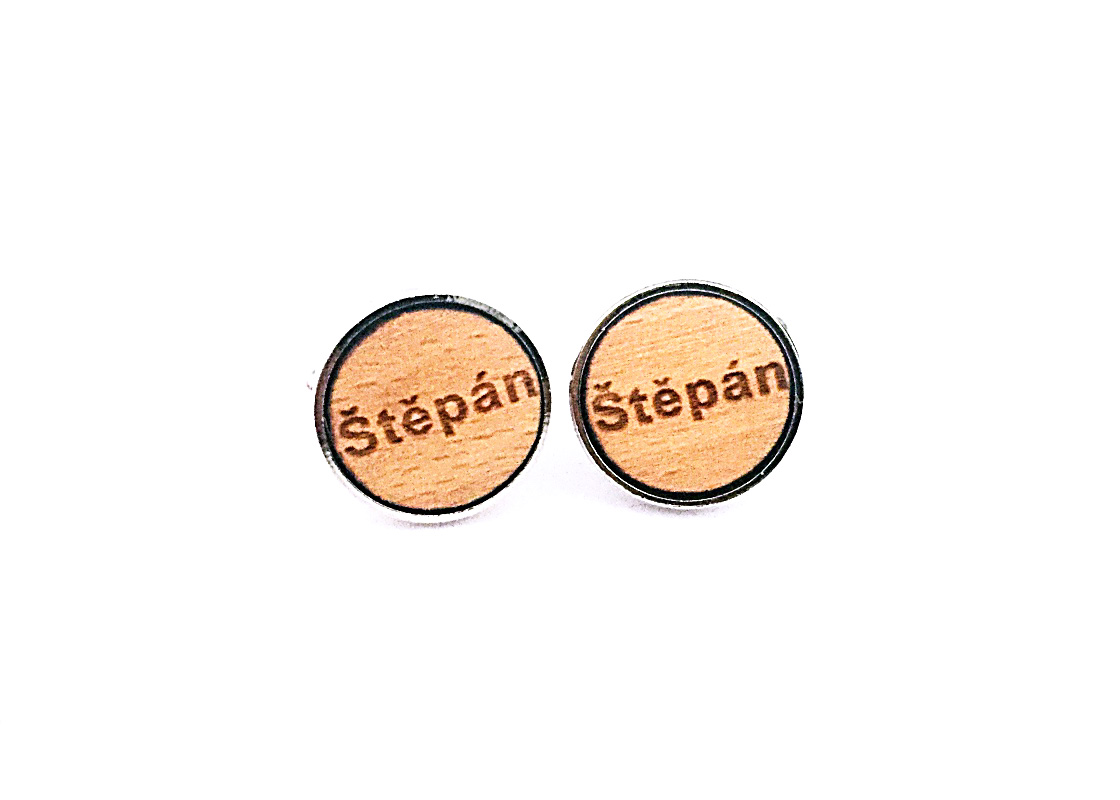 Popis: Originální a velmi osobité dřevěné manžetové knoflíčky Jména jsou vyrobené ze dřeva a mužské jméno Štěpán je vygravírováno laserem do dřeva. Dřevěná destička je poté osazena do kovového lůžka manžetky.