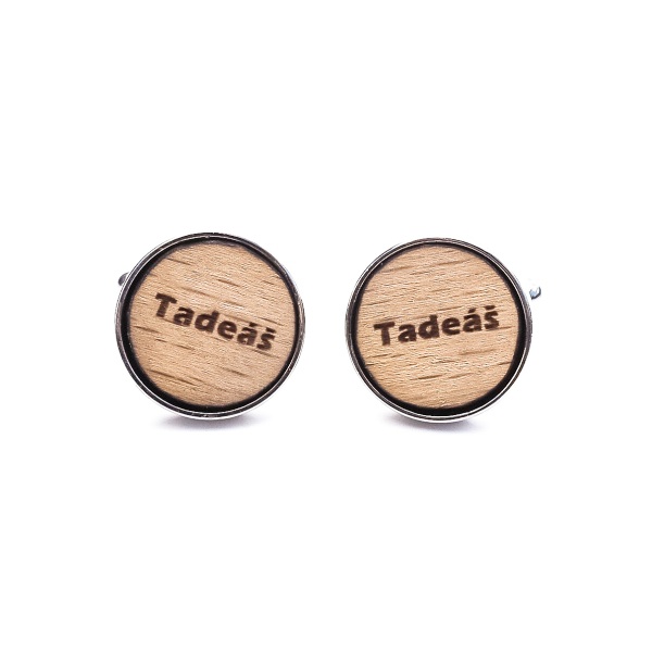 Popis: Originální a velmi osobité dřevěné manžetové knoflíčky Jména jsou vyrobené ze dřeva a mužské jméno Tadeáš je vygravírováno laserem do dřeva. Dřevěná destička je poté osazena do kovového lůžka manžetky.