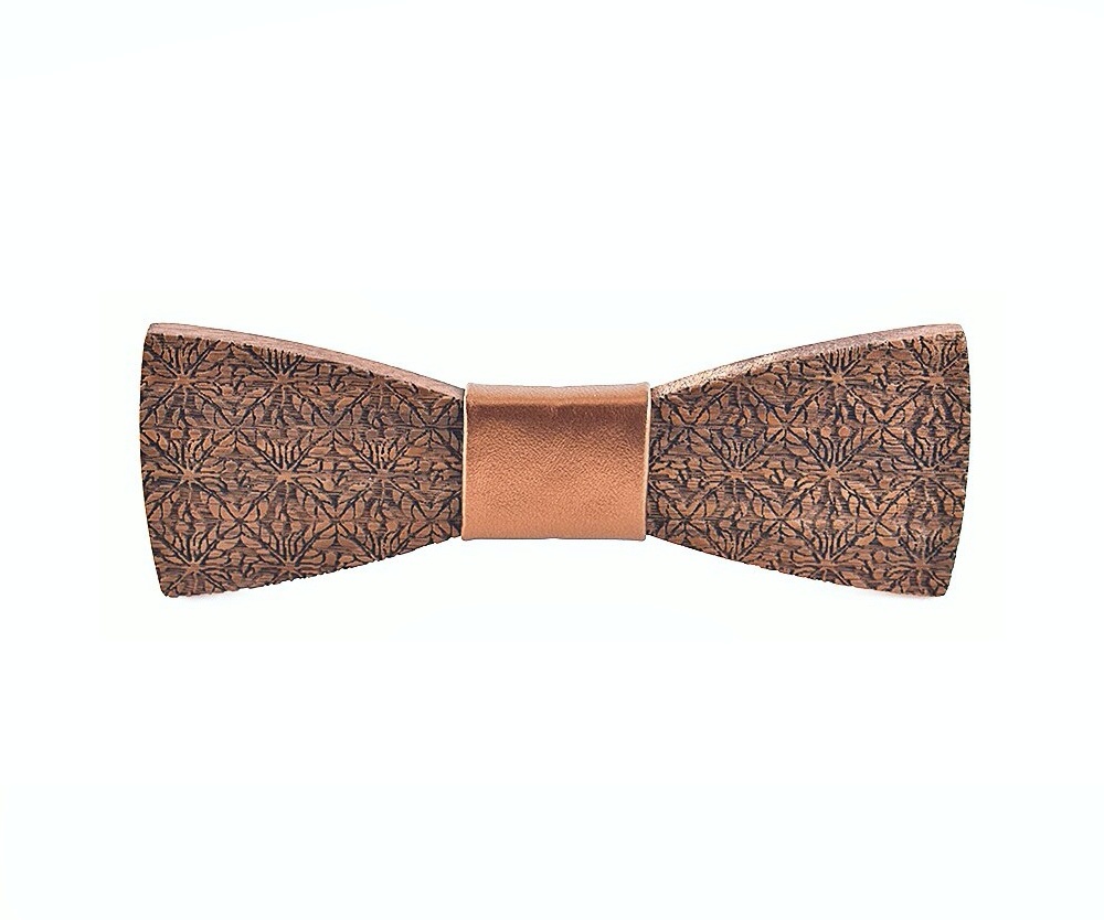 Popis: Dřevěný pánský motýlek Floral má vygravírovaný květinový vzor s bronzovým koženkovým středem.