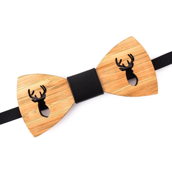 Motýlek má laserem vyřízlý design paroží jelena.
