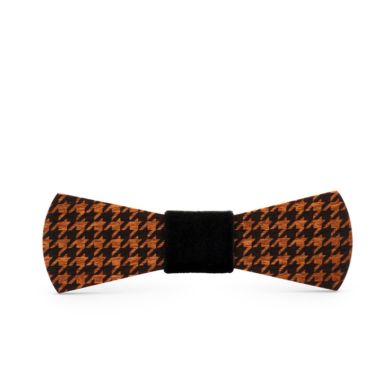 Originální a vysoce módní dřevěný pánský motýlek Doutník s designem houndstooth
