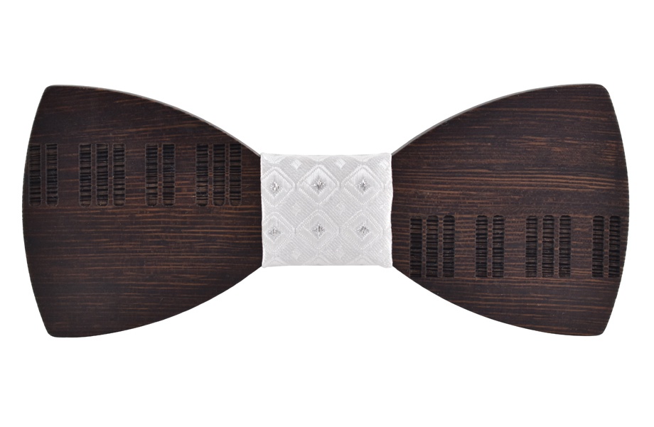 Dřevěný pánský motýlek Piano klávesy Hvězdy bílé wenge