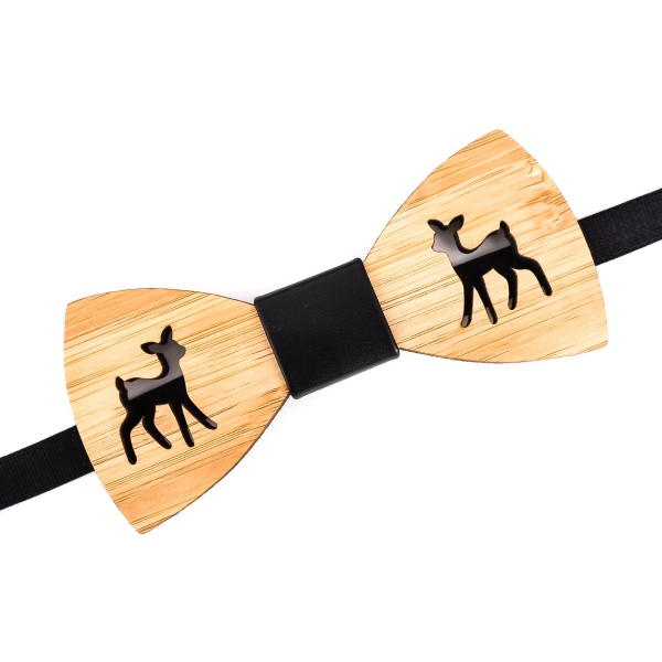Motýlek má laserem vyřízlý a vystředěný design malé srnky.