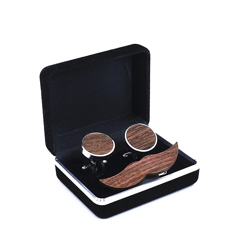 - Dřevěný set - manžetové knoflíčky + spona na kravatu Knír