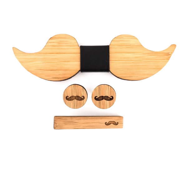 Praktický set je složený z dřevěného motýlku - pořádného mužského kníru.