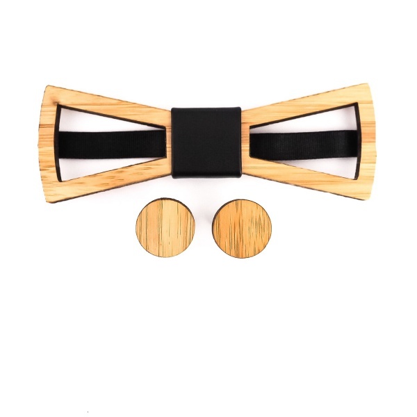 Stylový dřevěný set složený z pánského motýlku a manžetových knoflíčků