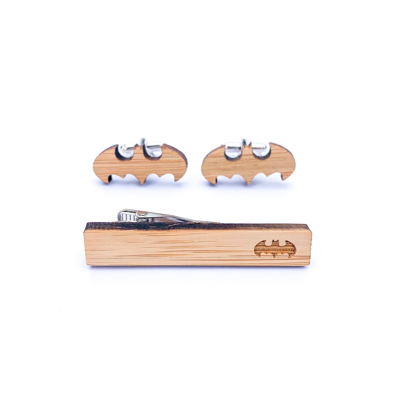 Dřevěný set - spona na kravatu a manžetové knoflíčky BatmanSkladem 1 set749 Kč/ set
