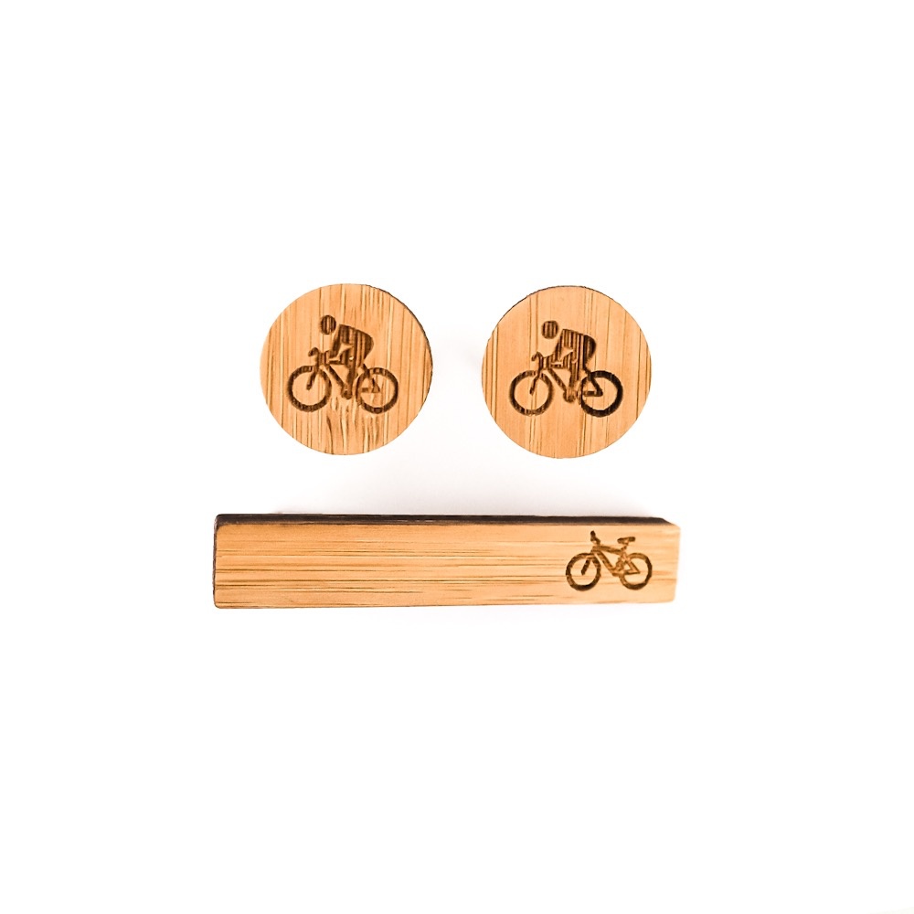 - Dřevěný set - spona na kravatu a manžetové knoflíčky Cyklista