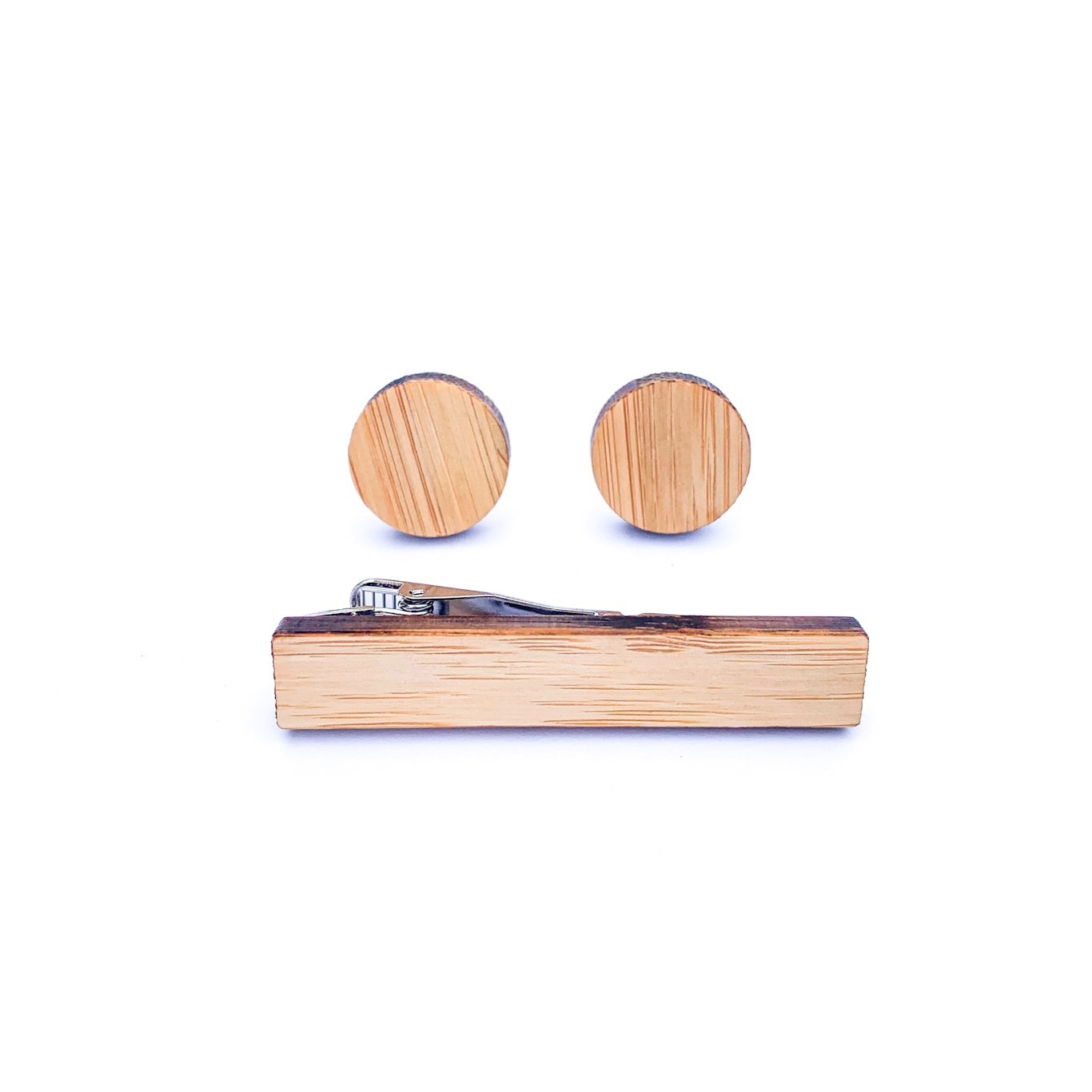 - Dřevěný set - spona na kravatu a manžetové knoflíčky Kruh