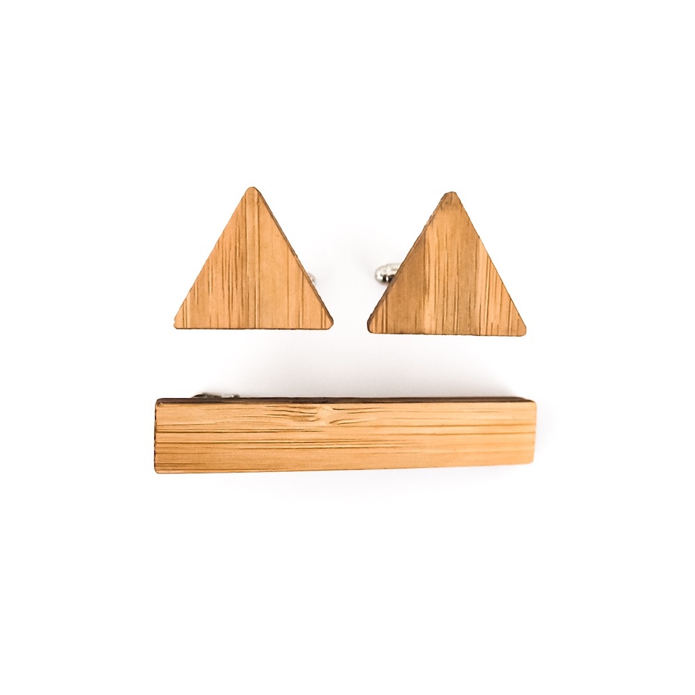 - Dřevěný set - spona na kravatu a manžetové knoflíčky Trojúhelník