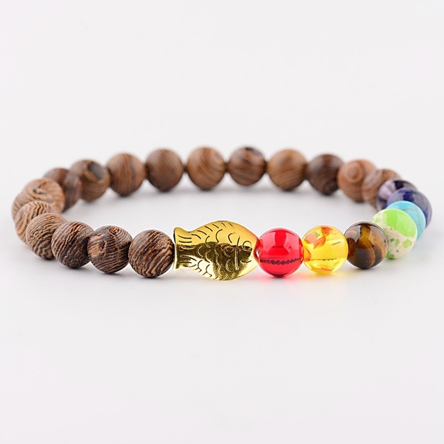Popis: Stylový módní pánský i dámský náramek Wood Zlatá ryba je vyrobený ze dřeva, doplněný zlatou rybkou a barevnými korálky.