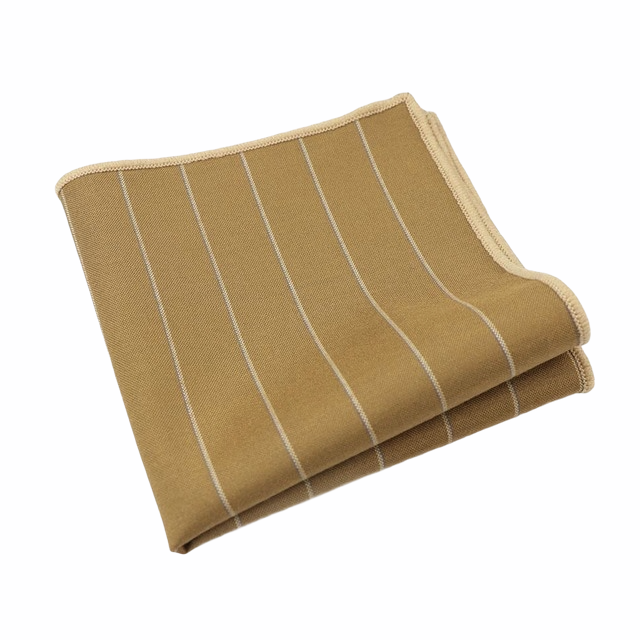Vyšperkujte svůj dokonalý outfit moderního gentlemana o stylový hnědý kapesníček do saka Line se vzorem bílých linek a kontrastního bílého obšití.